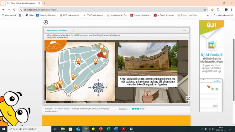Az utazás előtt előkészítő órákat tartottunk. Ezeken a foglalkozáson megismertük utazásunk helyszínét. A felkészüléshez az Okosdoboz Határtalanul Barangoló felületet is használtuk, melyen saját feladatokat is létre hoztunk.