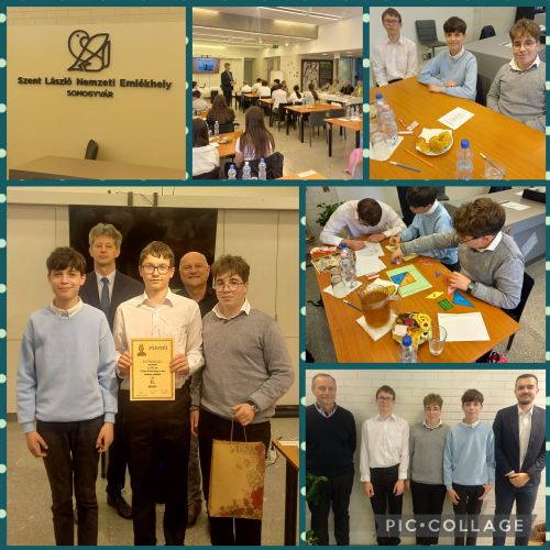 Kimagasló eredménnyel zárta a 8.b-s csapatunk (Hetényi Mátyás, Taizs Benedek, Szabó-Menyhárt Benedek) intézményünk testvériskolájában, Somogyváron megrendezett történelmi vetélkedőt, amelynek idei témája a mohácsi csata 500. évfordulója volt. Versenyzőink szoros küzdelemben szerezték meg a II. helyezést a 11 csapatból. Felkészítőjük: Balogh Ákos tanár úr. Szívből gratulálunk a szép eredményhez! Nagyon büszkék vagyunk Rátok!