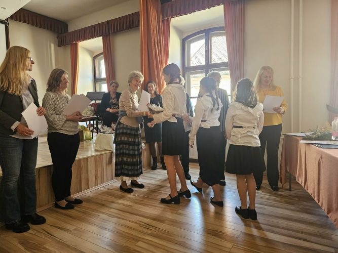 Március 18-án a győri Liszt Ferenc Zeneiskola épületében rendezték meg a régiós fordulót, ahol a fenti témákban kellett tesztlapokat kitölteniük a gyerekeknek, valamint egy-egy énekes produkciót is bemutatott minden csapat. A mi 6. osztályos lányaink egy széki és egy székelyföldi népdalcsokorral képviselték iskolánkat, melyre maximális pontot adott a neves zsűri. Jutalomként minden bejutott versenyző és felkészítő tanár közösen meglátogathatta a helyi múzeum mézeskalácsokról szóló, „Mézes élet fűszerezve” című kiállítását.
